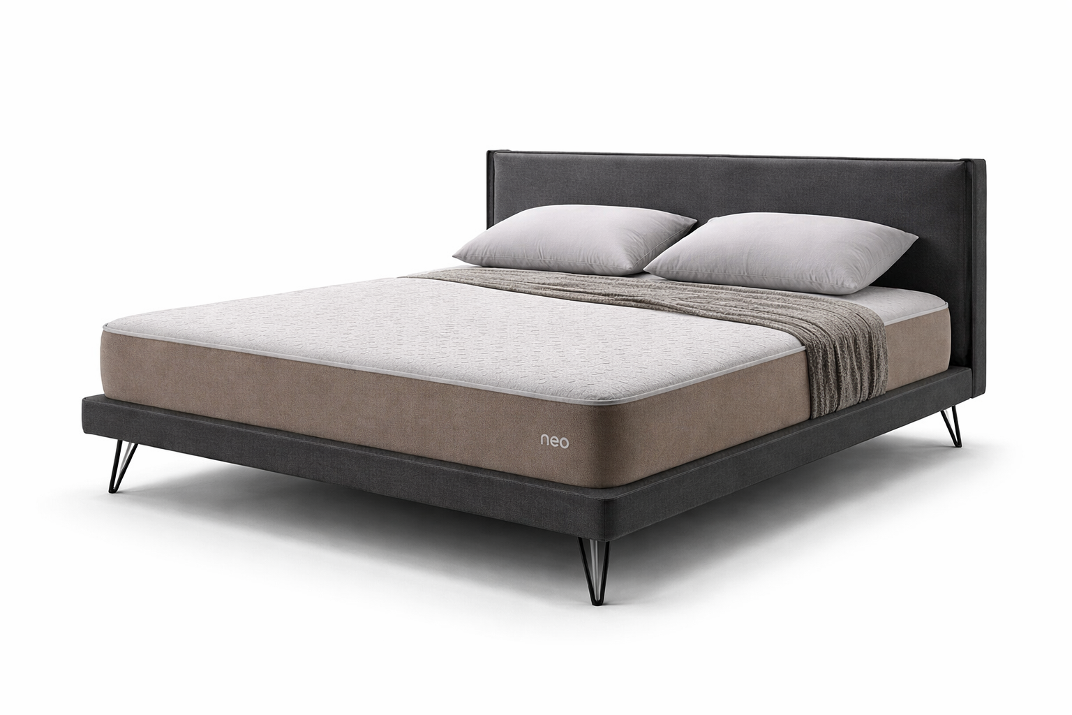 Neo combines a viscoelastic comfort layer with a supportive foam core. It adapts smoothly to the body, reducing pressure points while maintaining good airflow and comfort.